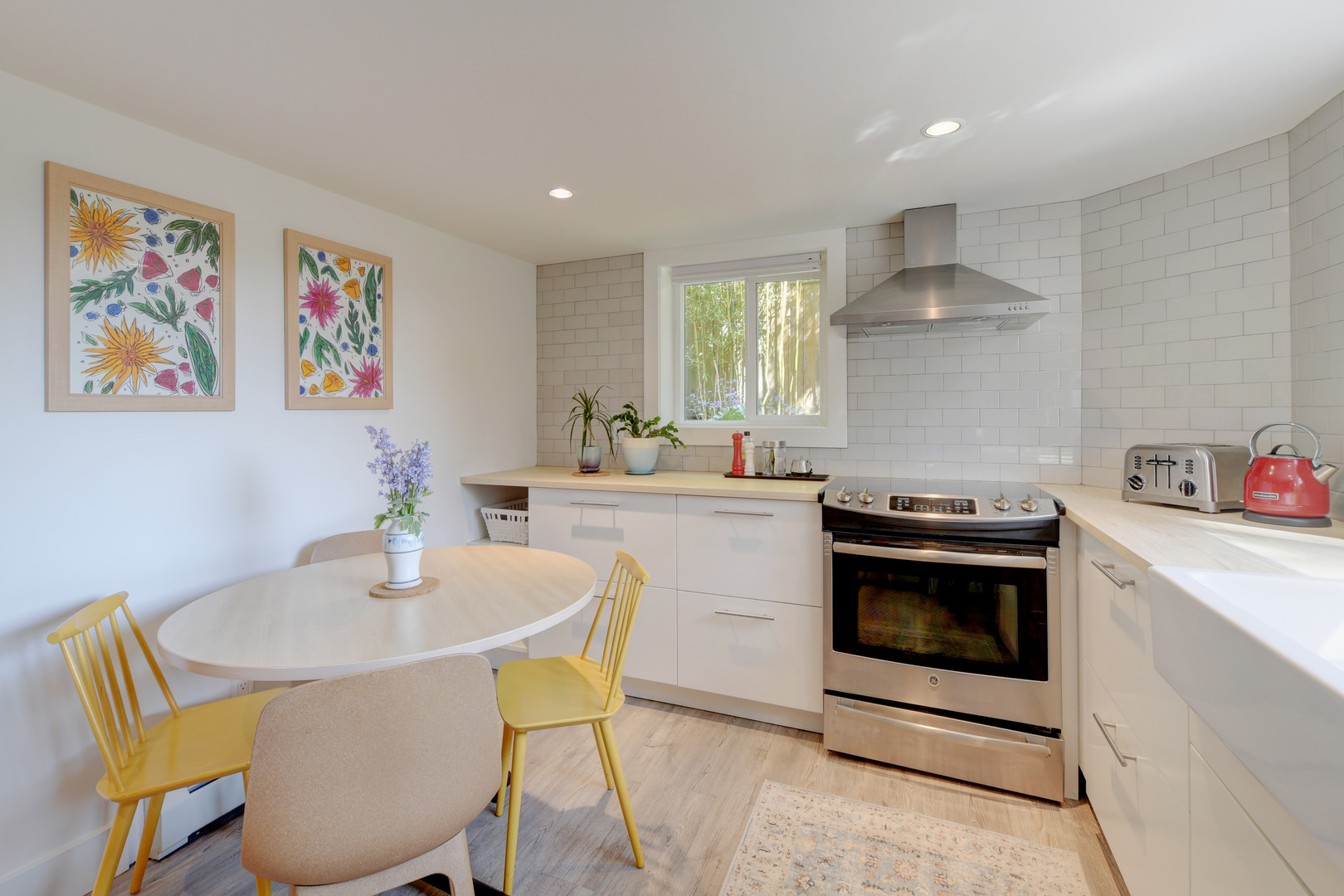 The space felt larger, brighter, newer, fresher! We brought back Mom Stack to finish up the rooms with us, we cleaned the windows and blinds, made sure the kitchen was move in ready - Nicky rebalanced the stove, and my Mom finished up the floors with some industrial German floor wax (really) and those original Fir floors have never looked better!