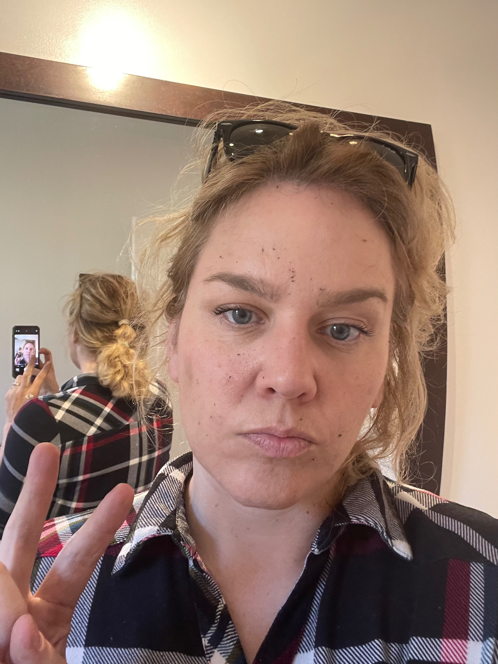 This was my Mom’s face after she’d finished (haha put that Mom to work!) And my face covered in dirt after a fun day of pressure washing the new listing. Real Estate isn’t all glamorous! :)