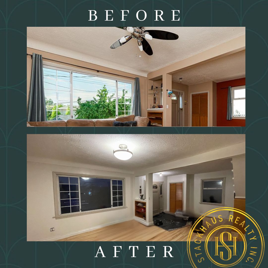 The buyers, helpers and us painted out 4 other rooms not shown, and Nicky and the buyers switched out some electrical fixtures in the living room and kitchen as shown, the buyers even painted out the trim before they moved in! Most buyers will not fix anything after the 6 month date after moving in. Do it right away when the furniture isn’t in the way and enjoy your new home. So proud of these new home owners!